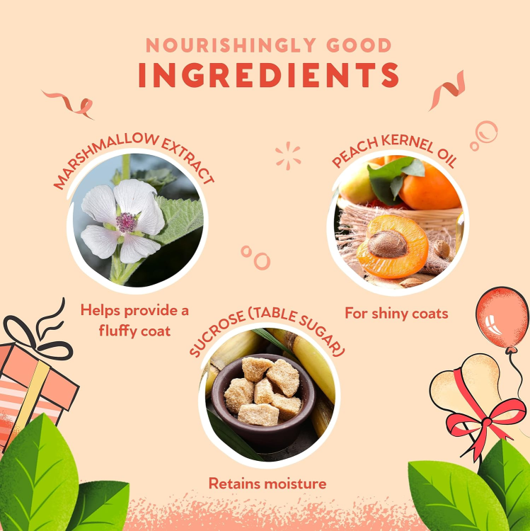 Pamper your pet: our Birthday Sparkle Shampoo is ideal for cleaning and care of all skin types. Our cotton candy fragrance is a gentle, sweet fragrance with subtle notes of peach and coconut.