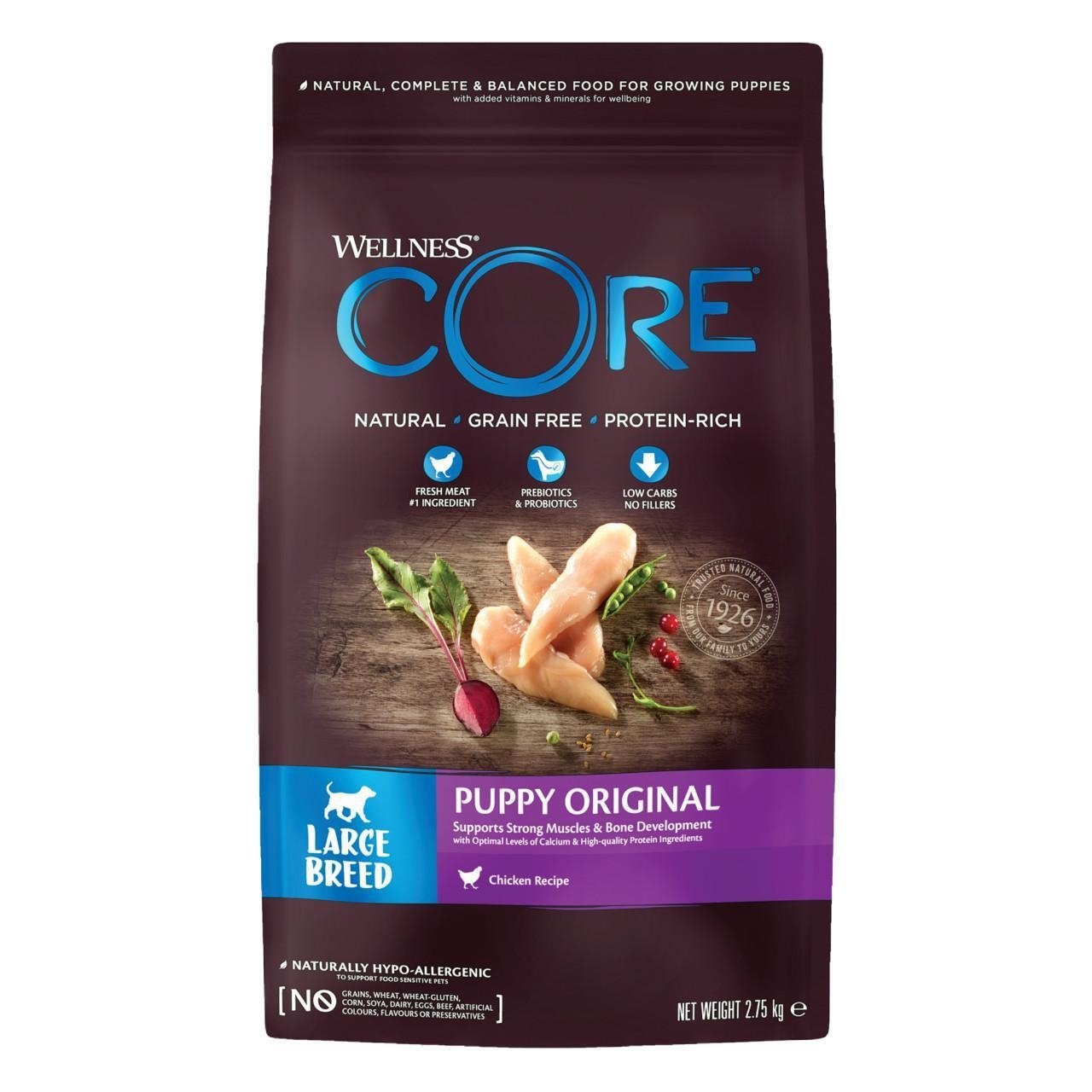 Discover the goodness of our Wellness CORE DD Large Breed Puppy Original Dry Food, meticulously crafted to promote the health, vitality, and growth of large breed puppies. This premium dry food is centred on our nutritional philosophy that puppies, akin to their primal ancestry, thrive on a diet primarily composed of meat.