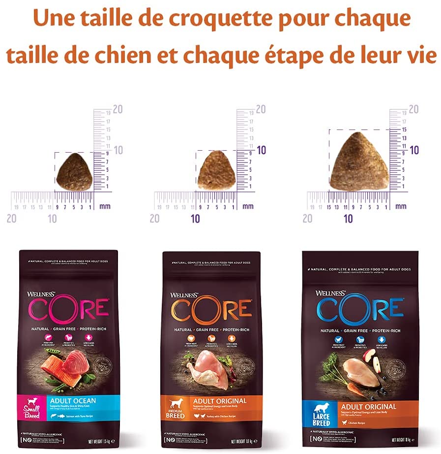 Welcome to the world of Wellness CORE, where we firmly believe in fulfilling your dog's inherent need for a meat-centric diet, akin to their primal ancestry. We've carefully designed our grain-free, protein-rich dry dog food, brimming with superior protein sources, alongside nutrient-rich superfoods and vital supplements. Ensuring your dog truly thrives from their very CORE is our foremost priority.